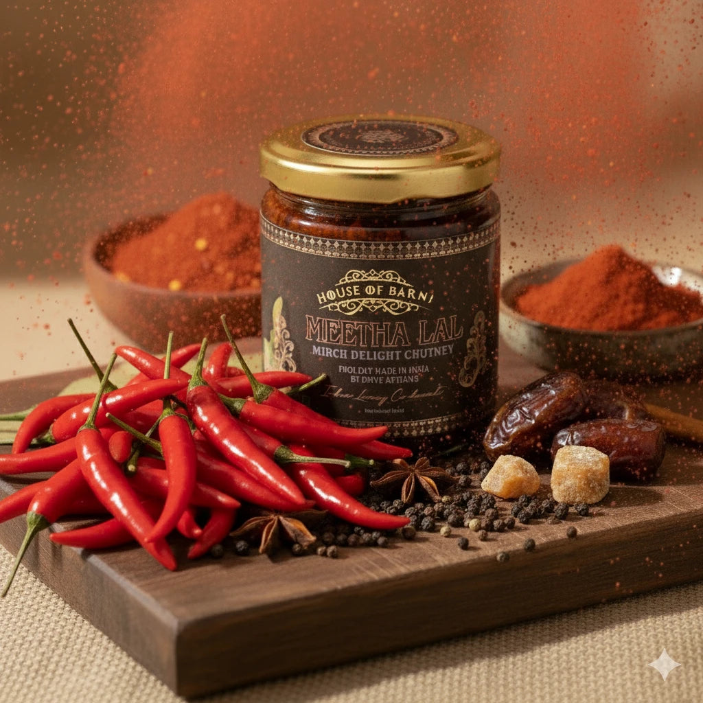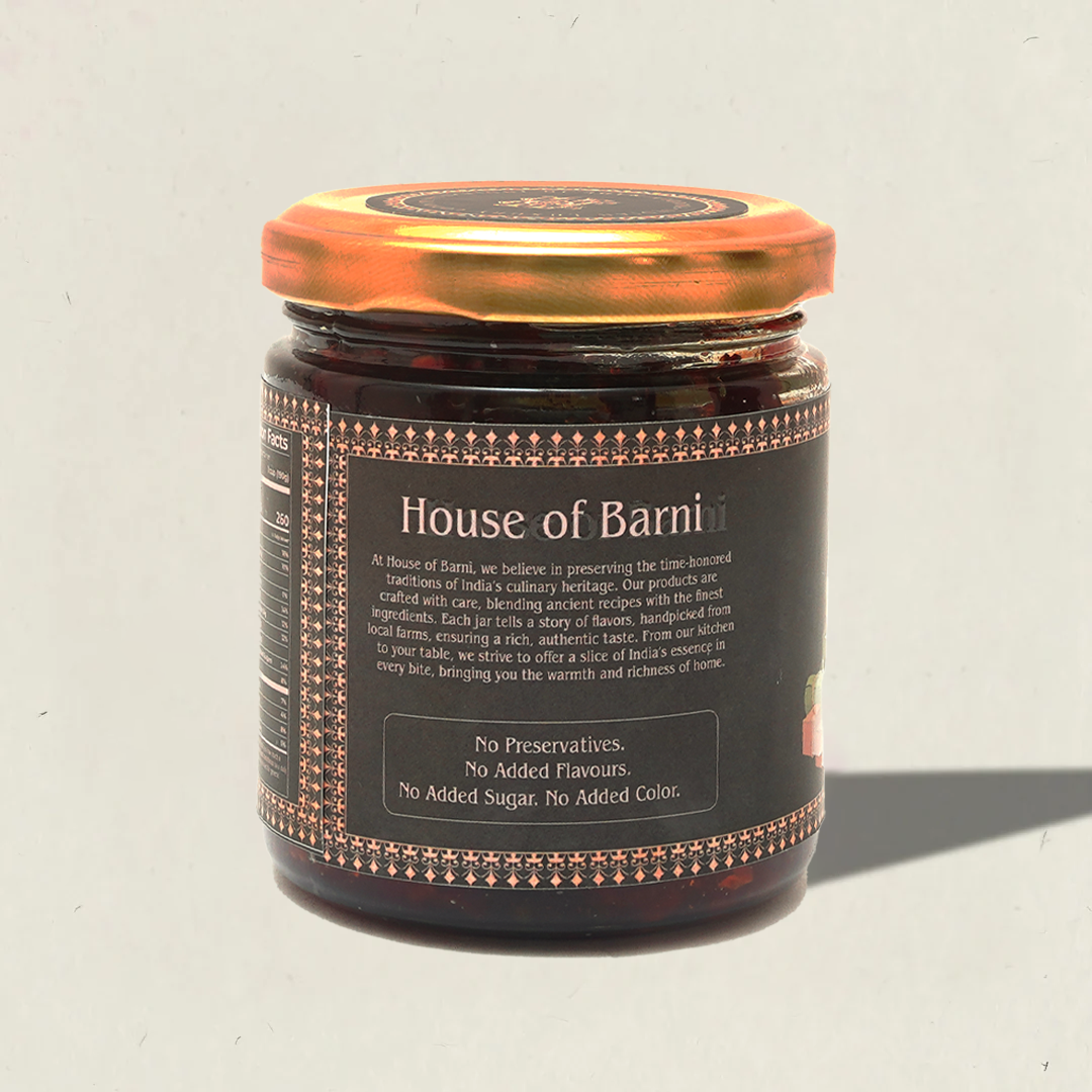 Sweetness with a spark. A chutney where ripe red chillies meet a slow, homely simmer — teasing the tongue with warmth and ending in gentle sweetness. It’s that balance between bold and tender, just like the way our mothers cooked — with patience and play.