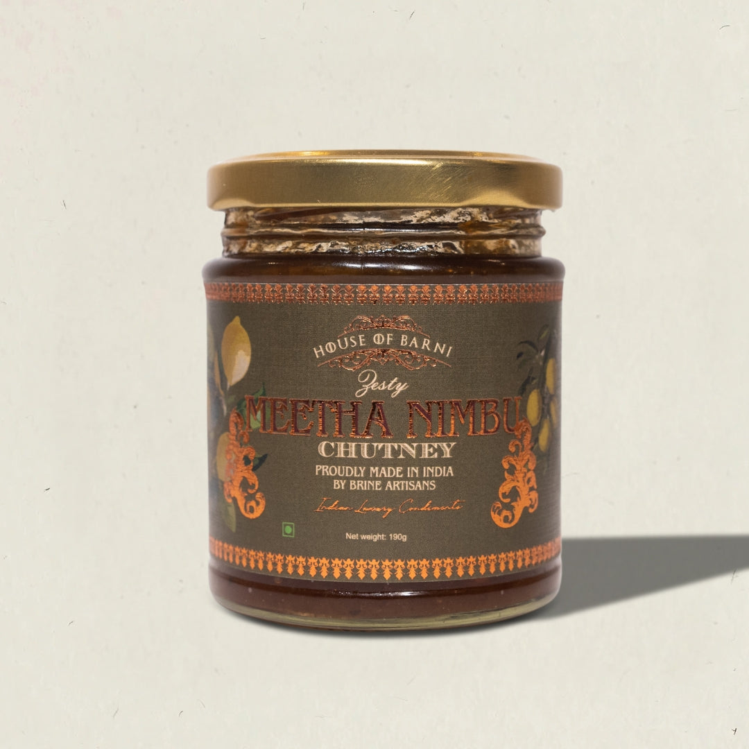 A vibrant chutney made with fresh lemons and sweet jaggery, creating the perfect balance of tangy and sweet. This chutney is a versatile delight, uplifting snacks and meals with its zesty burst of flavor.